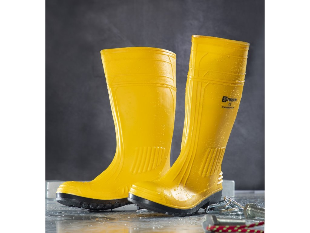 - originální holínky s ocelovou špicí a planžetou