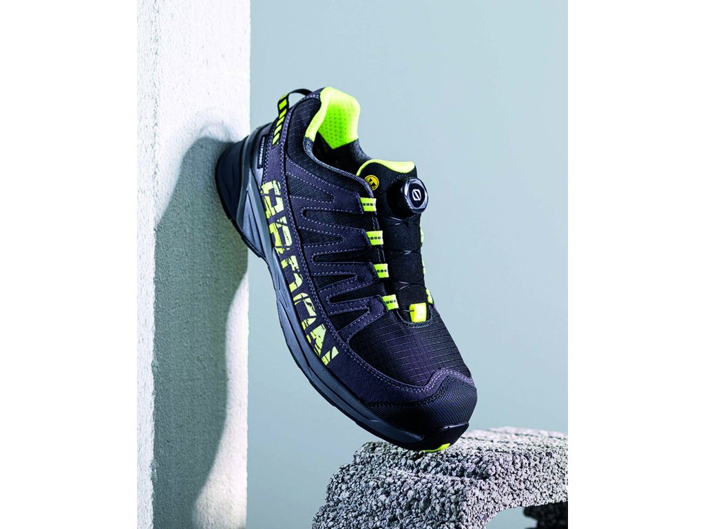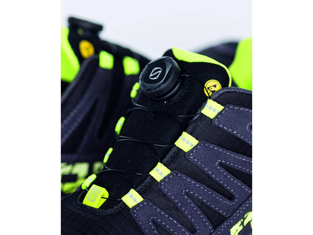 Bezpečnostní polobotka ENERDIG je ideální volbou pro pracovníky, kteří potřebují ochranu, komfort a zároveň vyžadují atraktivní moderní design. Svršek obuvi je vyroben z kombinace vodoodpudivého textilu a mikrovlákna, což zajišťuje vysokou odolnost a zároveň prodyšnost. Voděodolná membrána zabraňuje průniku vody dovnitř obuvi a zároveň poskytuje komfortní mikroklima. Anatomická stélka z pěnového materiálu se přizpůsobuje tvaru nohy a dobře tlumí nárazy při došlapu. Lehká sportovní podešev phylon/pryž je vhodná pro použití jak ve vnitřních, tak venkovních provozech. Obuv je vybavena nekovovými bezpečnostními komponenty a dosahuje antistatiky úrovně ESD. Uzavírání pomocí polohovacího kolečka posouvá uživatelský komfort na novou úroveň. Jde o špičkový univerzální model vhodný pro široké využití v různých typech pracovního prostředí.