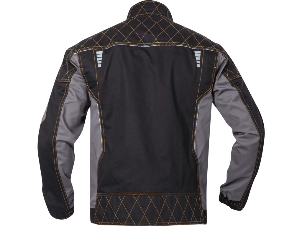 - zajímavé vizuální prvky jako jsou zesílené partie ramen a rukávů a kontrastní prošívání jeansovou nití