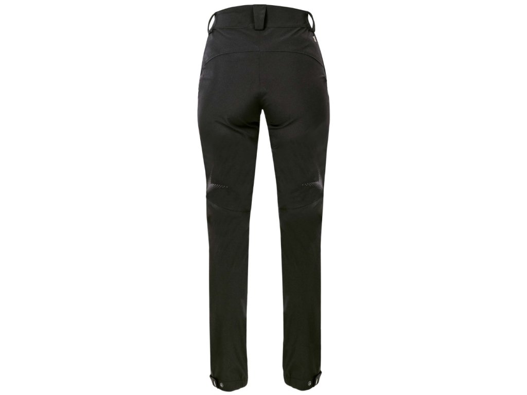 Dámské softshellové kalhoty mají přiléhavý střih SLIM FIT. Čtyřsměrně elastický odlehčený softshell ElasticTech®Flexi s membránou je vhodný i pro náročné aktivity, výborně chrání před větrem, je voděodolný, rychle schne a udržuje optimální tělesnou teplotu. Ventilační zipy se síťovinou na vnější straně stehen. Zadní díl člení sedlo, na předním dílu 2 zipové kapsy, pružný, tvarovaný obvod pasu zvyšuje komfort při nošení. Funkční tvarování nohavic, zúžený střih, spodní lem nohavic s možností nastavení obvodu pomocí druků, vnitřní háček s gumou pro upevnění nohavic k obuvi. Design dokreslují 3D reflexní potisky.
