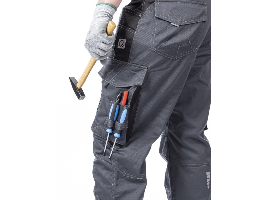 - kapsy na šroubovák, poutka na tužky, 2 kapsy na skládací metr integrované do lampasu na levé i pravé straně