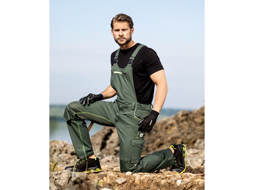 - strečové bavlněné montérkové kalhoty s laclem ze speciálního materiálu Amalytton®, který vyniká zvýšenou pevností a hladkým, jemným povrchem