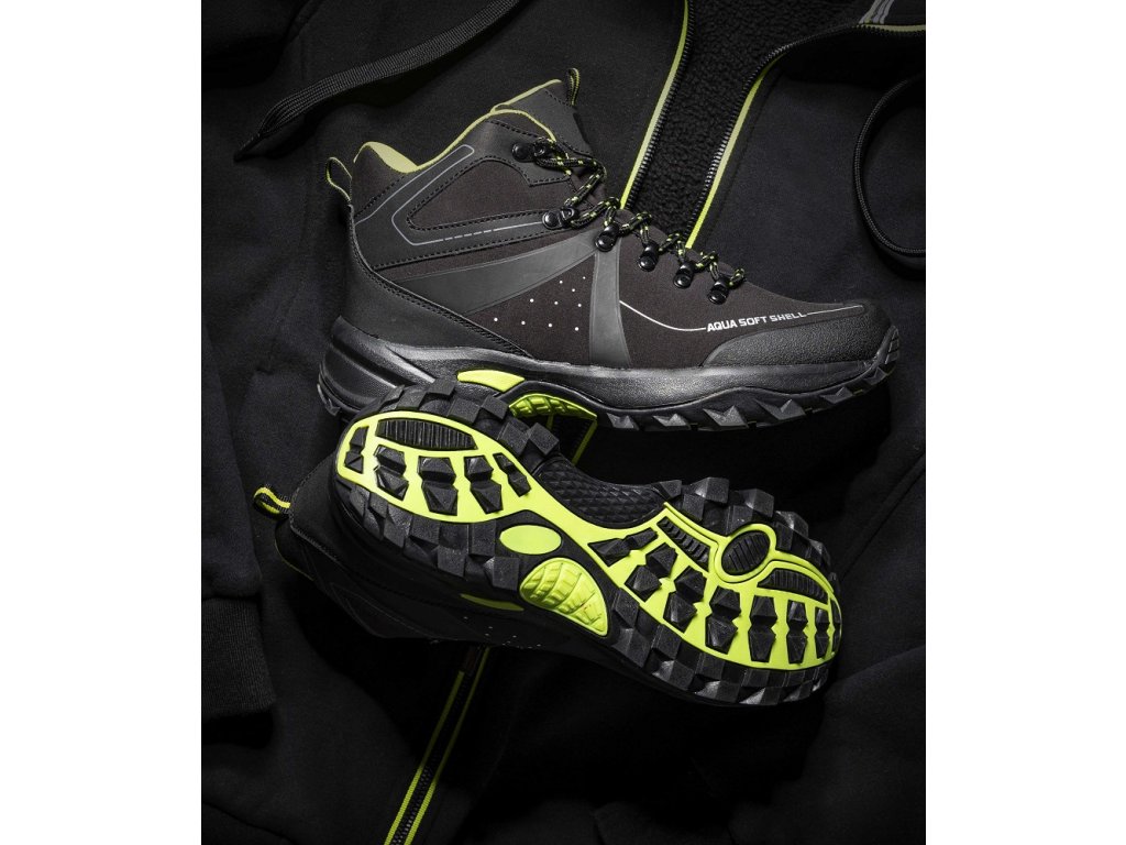 - softshellová kotníková obuv v černé barvě s reflexními detaily