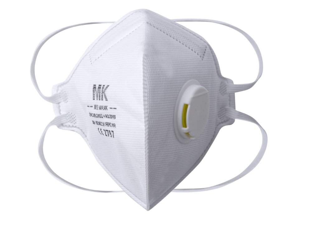 Čtyřvrstvý skládaný respirátor FFP2 s ventilkem – chrání dýchací orgány před pevnými částicemi a aerosoly nad 0,3 mikrony. Účinný proti bakteriím a plísním, pevným a kapalným prachům, kouřům a aerosolům.