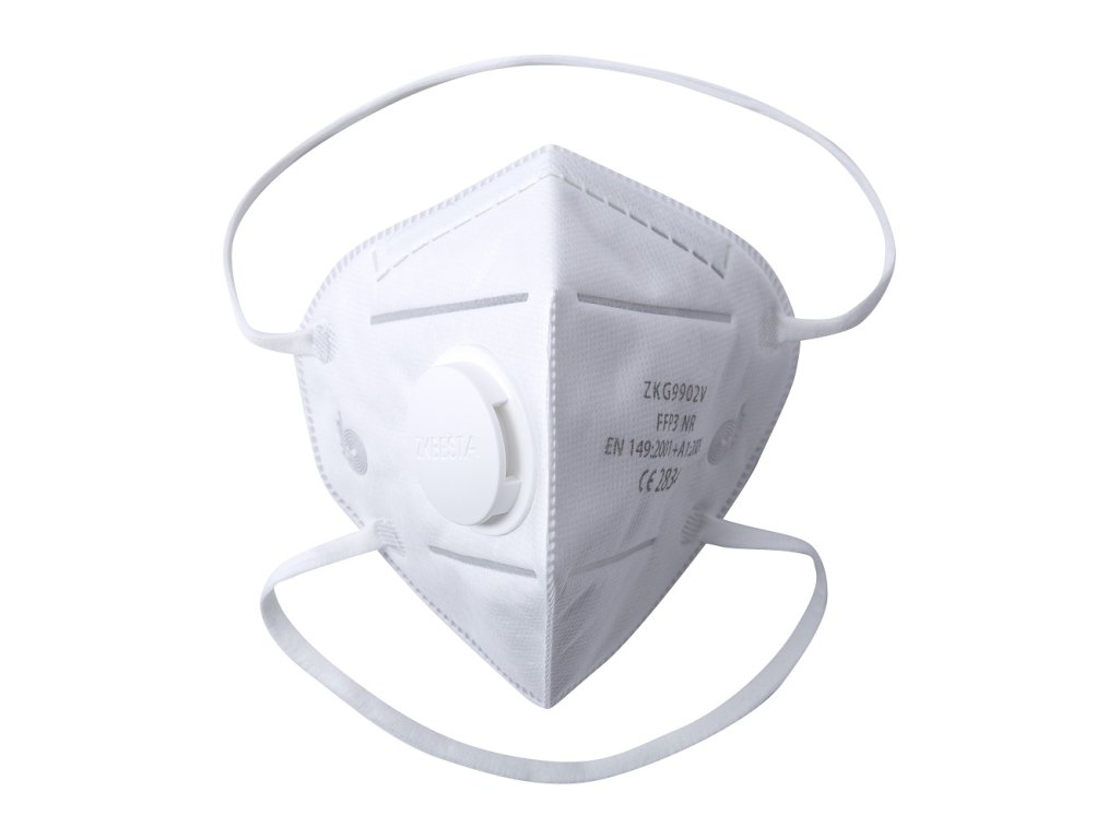 Skládaný pětivrstvý respirátor FFP3 s polypropylenovým filtračním médiem, chrání proti jedovatým a zdraví škodlivým prachům, kouři a aerosolům, filtruje karcinogenní a radioaktivní škodlivé látky a patogeny, jako jsou viry, bakterie a spory hub.