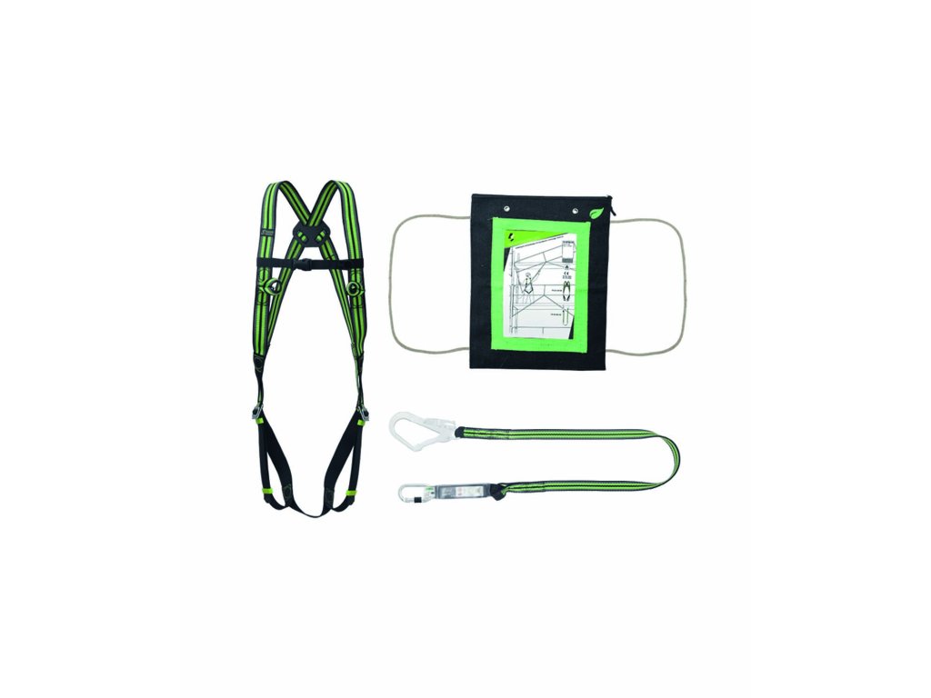 - složení sady FA 80 002 00: celotělový bezpečnostní postroj FA 10 103 00 a popruhový spojovací prostředek s tlumičem pádu, délka 1,80 m, FA 30 304 18