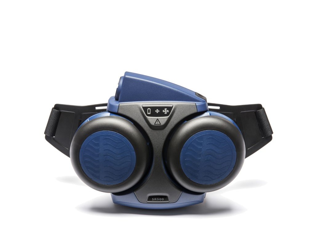 - součástí balení SR 500 je standardní baterie, ergonomický opasek, adaptér pro částicový filtr SR 511, 2x částicový filtr SR 510 P3 R, 10x předfiltr SR 221, 2x držák předfiltru SR 512