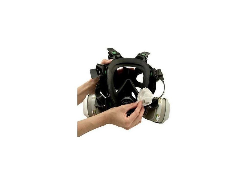 3M™ Čistič na obličejová těsnění 105 se dodává ve formě jednotlivě balených zvlhčených ubrousků a je určen k čištění obličejové části bez jejího poškození.