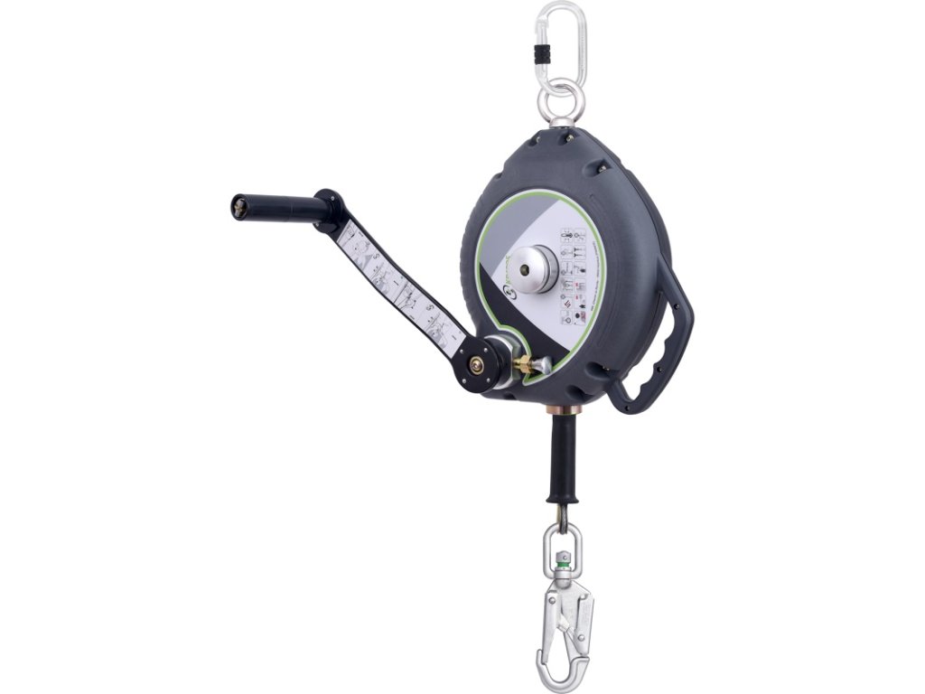 - zatahovací zachycovač pádu s integrovaných záchranným navijákem